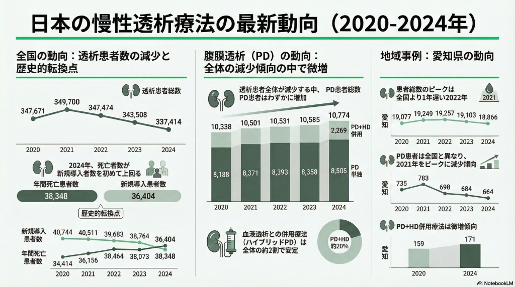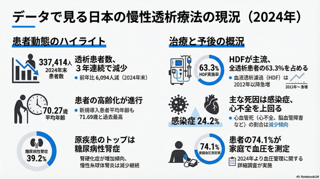 ※本レポートは日本透析医学会「わが国の慢性透析療法の現況(2024年12月31日現在)」に基づき作成されました。詳細なデータについては原典をご参照ください。